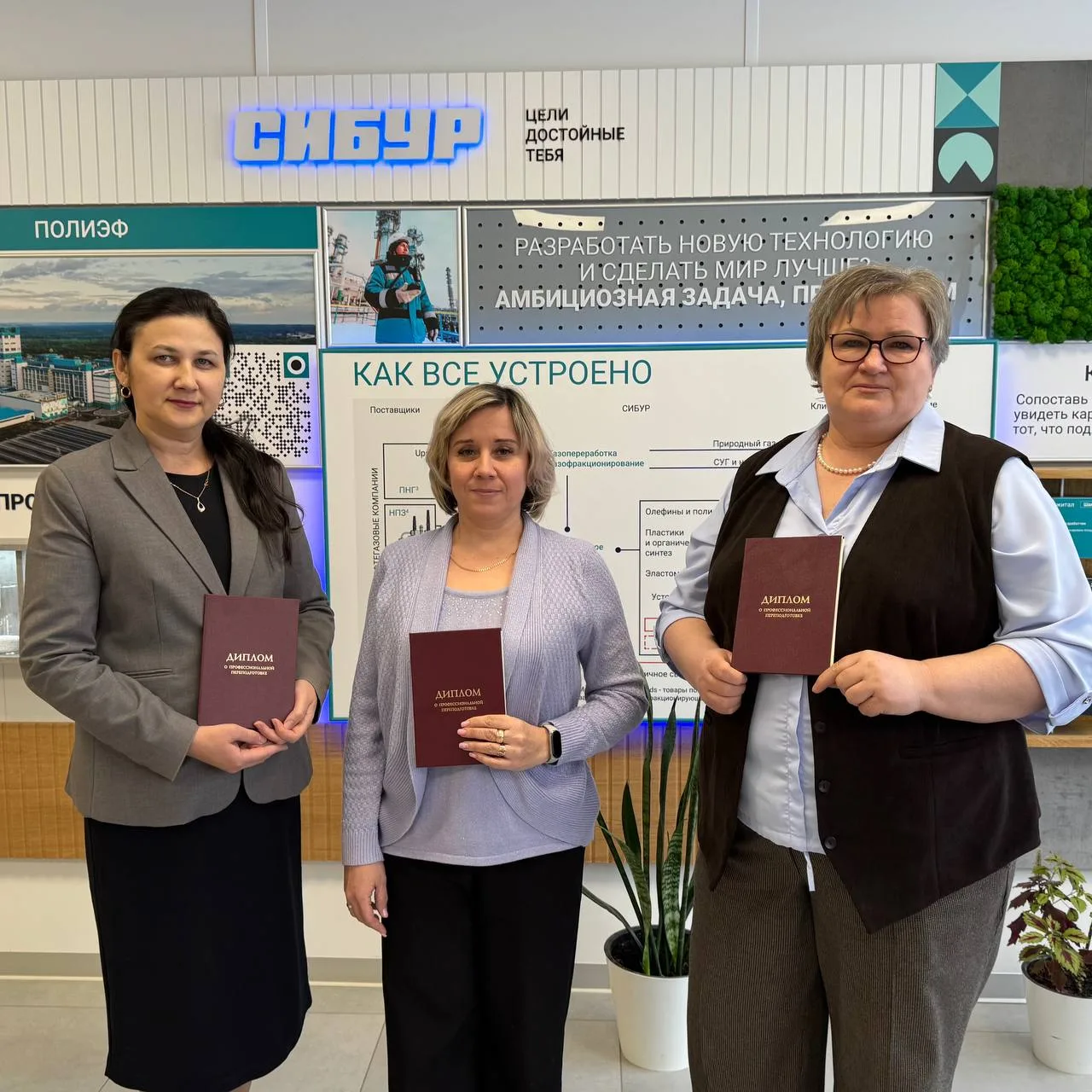 💥 Виктория Будылина, Ирина Лукманова и Надежда Толстова успешно завершили обучение по программе профессиональной переподготовки «Теоретические основы и управление химико-технологическими процессами» в ФГАОУ ВО «Национальном исследовательском Томском политехническом университете» по инициативе компании ПАО СИБУР.